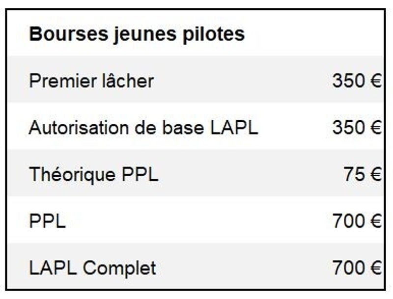 NB : Les bourses sont destinées aux jeunes élèves pilotes de moins de 21 ans.